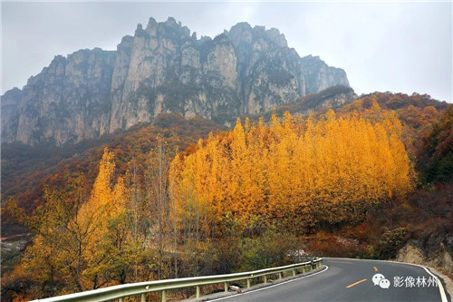深秋的太行,五彩斑斕,順著崎嶇的山道,走進(jìn)桃花谷風(fēng)景區(qū),走進(jìn)太行天路,尋找那一束屬于秋天的顏色。山路回轉(zhuǎn),車輛徐徐行駛,那一顆棵白楊傲然挺立太行山上,那一層層細(xì)碎的黃葉,隨風(fēng)而飛,如蝶起舞,和遠(yuǎn)處的紅、近的黃,和天路一起,勾勒出一幅色彩明麗的油畫。