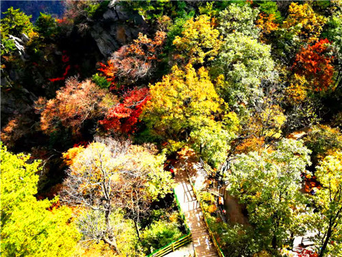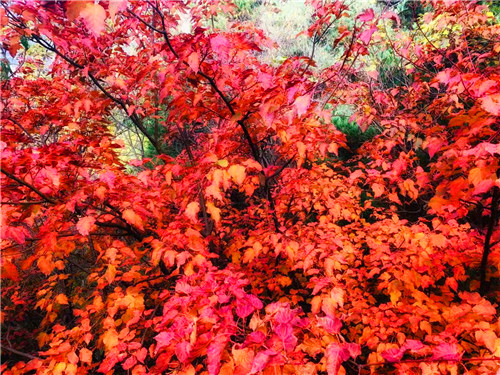 在山頂看紅葉。在號(hào)稱“伏牛屋脊”的犄角尖上,你可以俯身,可以遠(yuǎn)眺,感受峭壁紅葉、萬葉飄丹的深秋魅力,如果你夠幸運(yùn),還可以在這里欣賞到深秋的日出日落,看到不一樣的蒼茫云海,而此時(shí)的你,也是這金秋畫卷里的一部分,美輪美奐又不失靈動(dòng)活潑!