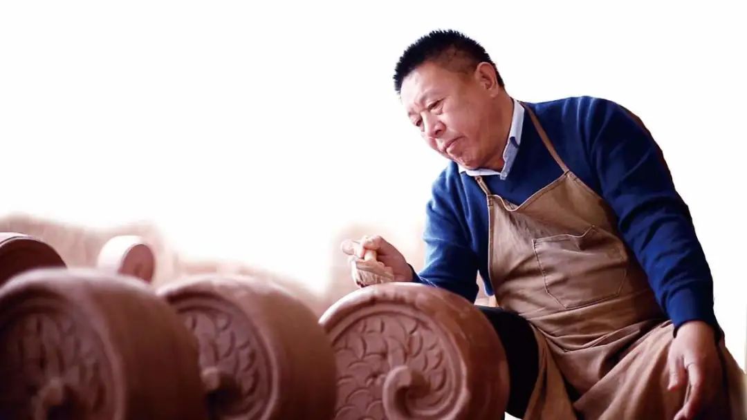 河南省級非遺琉璃瓦件燒制技藝傳承人趙志鴻在制作琉璃瓦