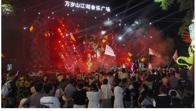 萬歲山大宋武俠城以“皓月之巔,武俠江湖”為主題,開展游園活動+NPC互動,舉行國內(nèi)首屆武林拜月盛會,推出荷花燈祈福、燈謎墻、趣味吃月餅、閑趣釣螃蟹、功夫表演、漢服快閃等活動邀請游客體驗(yàn)繁華大宋民俗,感受“武俠江湖魅力”;