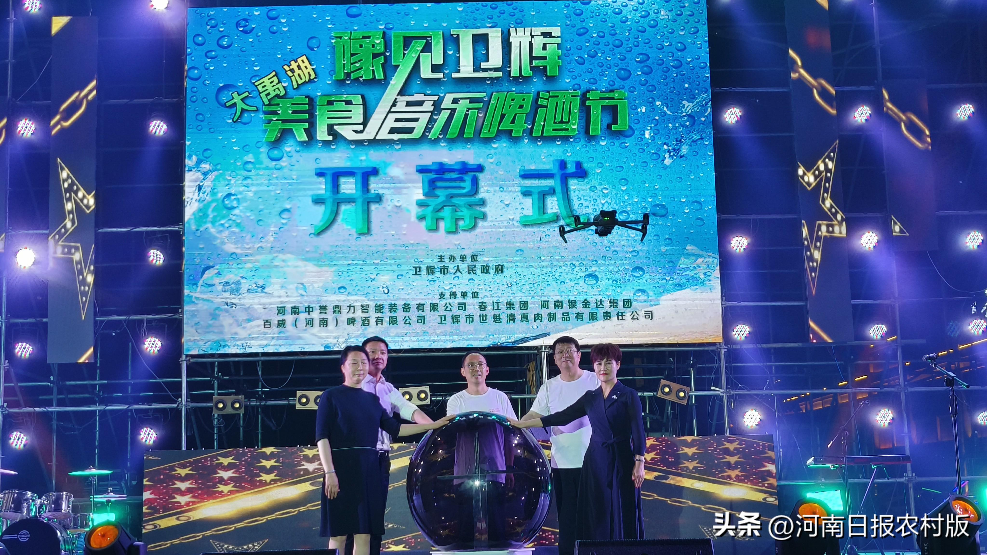 當(dāng)晚,以“點燃衛(wèi)輝夜經(jīng)濟,嗨啤激發(fā)新活力”為主題的“豫見衛(wèi)輝”大禹湖美食音樂啤酒節(jié)在此開幕。