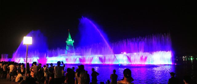 晚上20:30,夜幕低垂,是最適合欣賞園區(qū)音樂(lè)噴泉的時(shí)間。音樂(lè)、噴泉、燈光將在這里擦出絢麗的火花!在優(yōu)美的音樂(lè)中,伴隨著多彩的燈光,噴泉仿佛有了生命,水柱交錯(cuò)縱橫,如同舞動(dòng)的音符,不管從哪個(gè)角度欣賞,都是一派聲、光、水組合而成的靈動(dòng)景象,美輪美奐,似夢(mèng)幻般的人間仙境。靚麗的景觀,給游客帶來(lái)新穎、絢爛的視覺(jué)沖擊,市民們紛紛掏出手機(jī)和相機(jī),定格這美麗的瞬間。