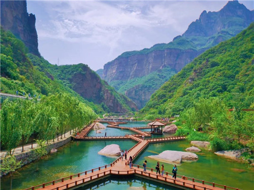 5月的寶泉,林壑尤美,望之蔚然而深秀。高峽平湖,潭水清澈,親水而行,人行畫(huà)中,陣陣清涼撲面而來(lái)。