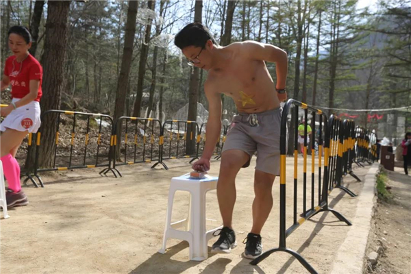 森林氧吧內(nèi),樹青草綠,環(huán)境宜人。各地慕名而來的游客就在彩門前等候,都想一睹“光豬跑”的精彩一幕。來自鄭州等地的光豬跑選手,穿著短褲體恤,手舉各色旗幟,進入現(xiàn)場。