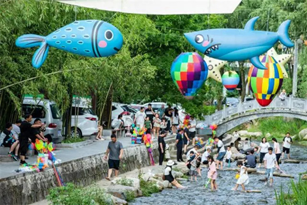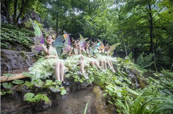 夕陽西下,在重渡溝上演一場狂歡PARTY,激發(fā)你的夏日多巴胺。吟詩送瓜,送來清涼與驚喜。賣貨郎游走山水間,隨機送驚喜。冰糕小販騎著老式自行車送冰棍,帶來兒時回憶。精靈仙子邀您進入魔法森林,感受童話里的清涼世界。