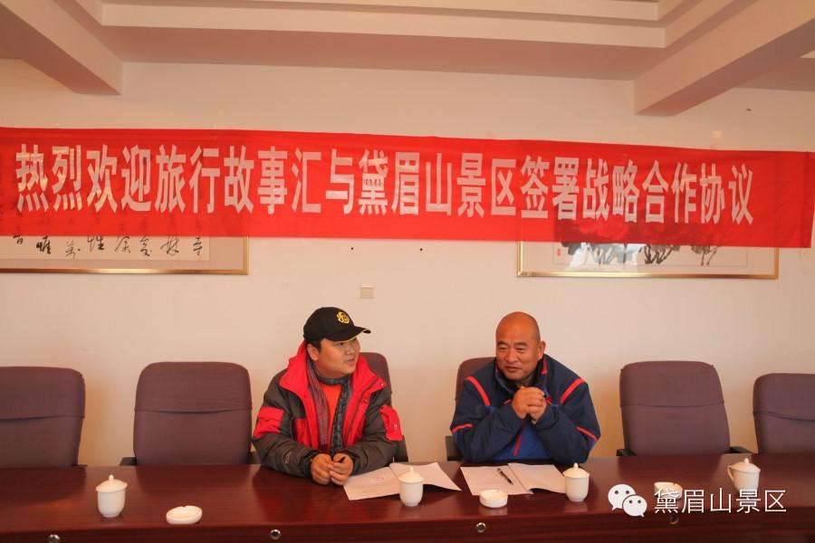 黛眉山景區(qū)與旅行故事匯簽訂戰(zhàn)略合作協(xié)議簽訂儀式現(xiàn)場(chǎng)