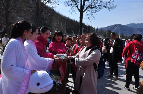 為迎接3.8女神節(jié)的到來,青天河的桃花“仙子”們?yōu)楦魑挥慰团笥褌儙砹擞腥さ拿赓M(fèi)大抽獎活動,凡抽到禮品的,“仙子”們當(dāng)場送送送!
