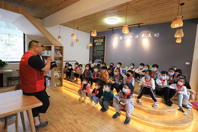 揭牌儀式后,與會(huì)領(lǐng)導(dǎo)與重渡溝村小學(xué)師生代表共同參觀了重渡溝分館,并一起參與“名師與孩子面對(duì)面”讀書活動(dòng)。小讀者紛紛表示第一次參與這樣有意義的讀書體驗(yàn)活動(dòng),與身邊的小伙伴、課堂上的名師零距離接觸,收獲頗豐。
