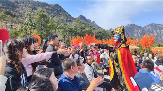 “向云端,山那邊……”寧靜而又治愈的歌聲從寶泉懸崖邊上傳來,當(dāng)天上午,樂隊(duì)奏響的音樂在游客們的歡呼聲中不斷“發(fā)酵”,為“紅葉節(jié)”增添了濃濃的歡慶氛圍。