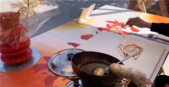 勺下是可觀可食的糖畫,“販賣”的卻是濃濃的秋日氛圍感。