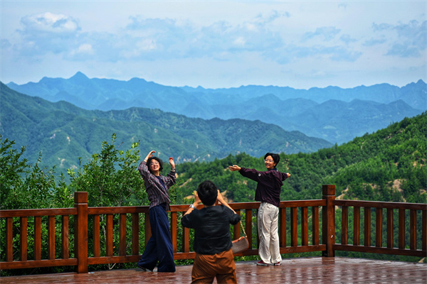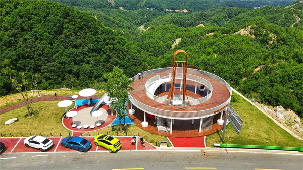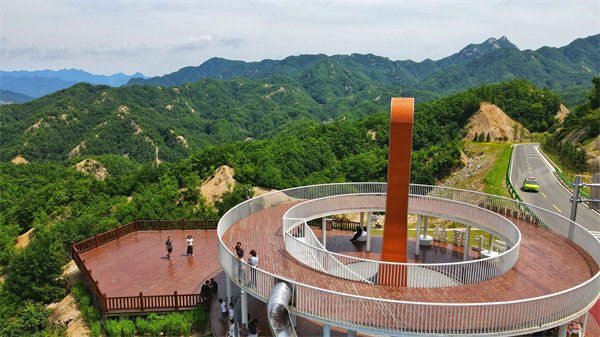 7月22日,在洛陽市欒川縣陶灣鎮(zhèn)境內(nèi),自駕游客在生態(tài)伏牛一號旅游公路“云上驛站”欣賞大山深處的美景。