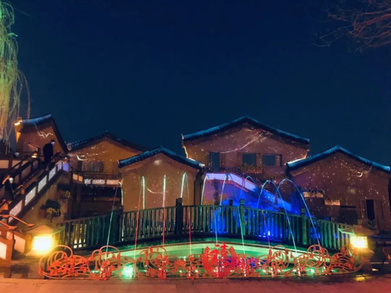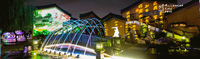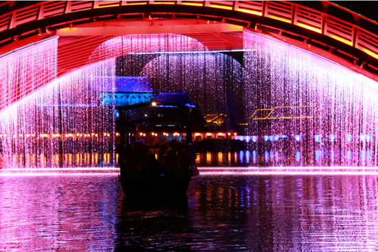 禧墻是夜間的拍照圣地,游客們在這里乘著光影,搭著光束,穿過小橋流水,感受一年的春夏秋冬。