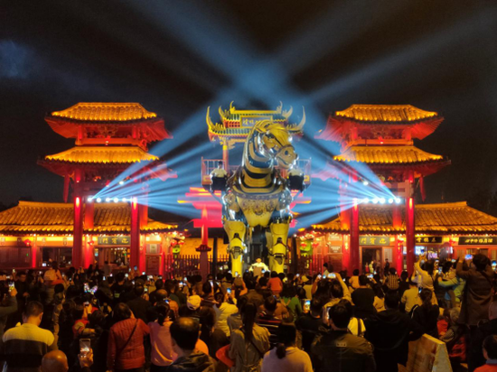 中華巨馬停放在清明上河園迎賓門廣場,每天進行5—6場的免費演出,無論是游客還是過往市民,都可免費觀賞中華巨馬的身姿形態(tài)。特別是在節(jié)慶期間,還會進行巡游表演,壯觀異常。
