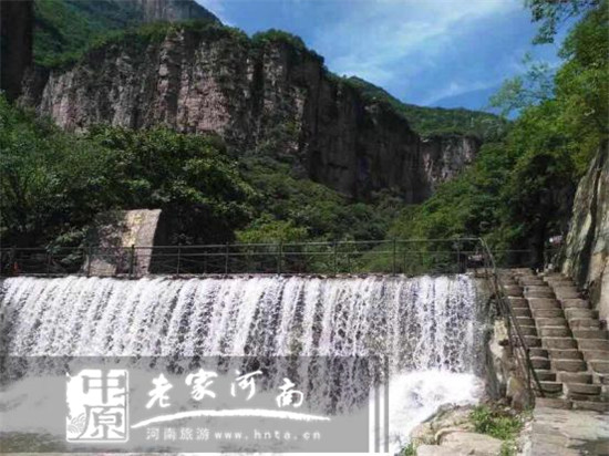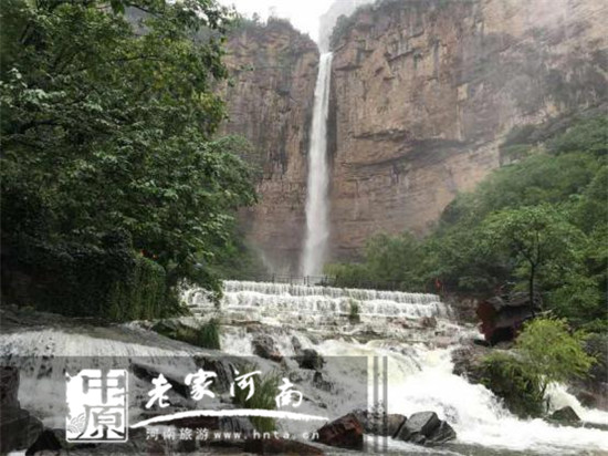 “一條界破丹崖秋,千溪匯成八里溝。素女持練舞絕壁,碧潭映像印峰頭。珠濺客衣傾玉盆,水惹人醉斟美酒。太行魂魄種毓底地,縱有彩筆難勾求”。——《八里溝天河瀑布雨景》布茂嶺作