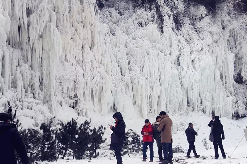 你看那山崖峭壁上的水滴凝結(jié)成千姿百態(tài)的冰掛,一團(tuán)團(tuán),一簇簇,懸掛在山崖上,層層疊疊美不勝收。