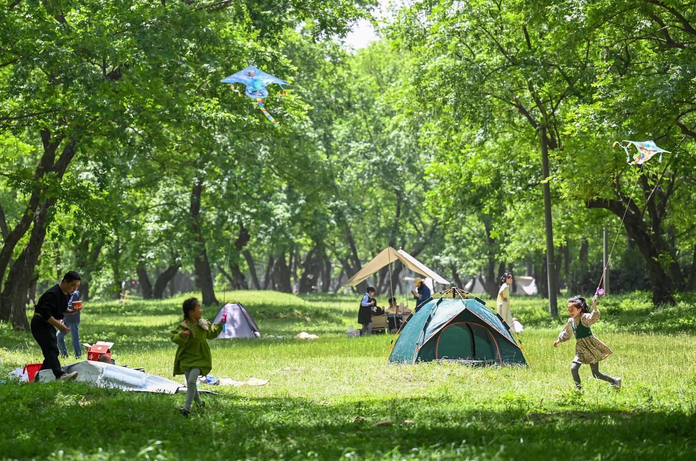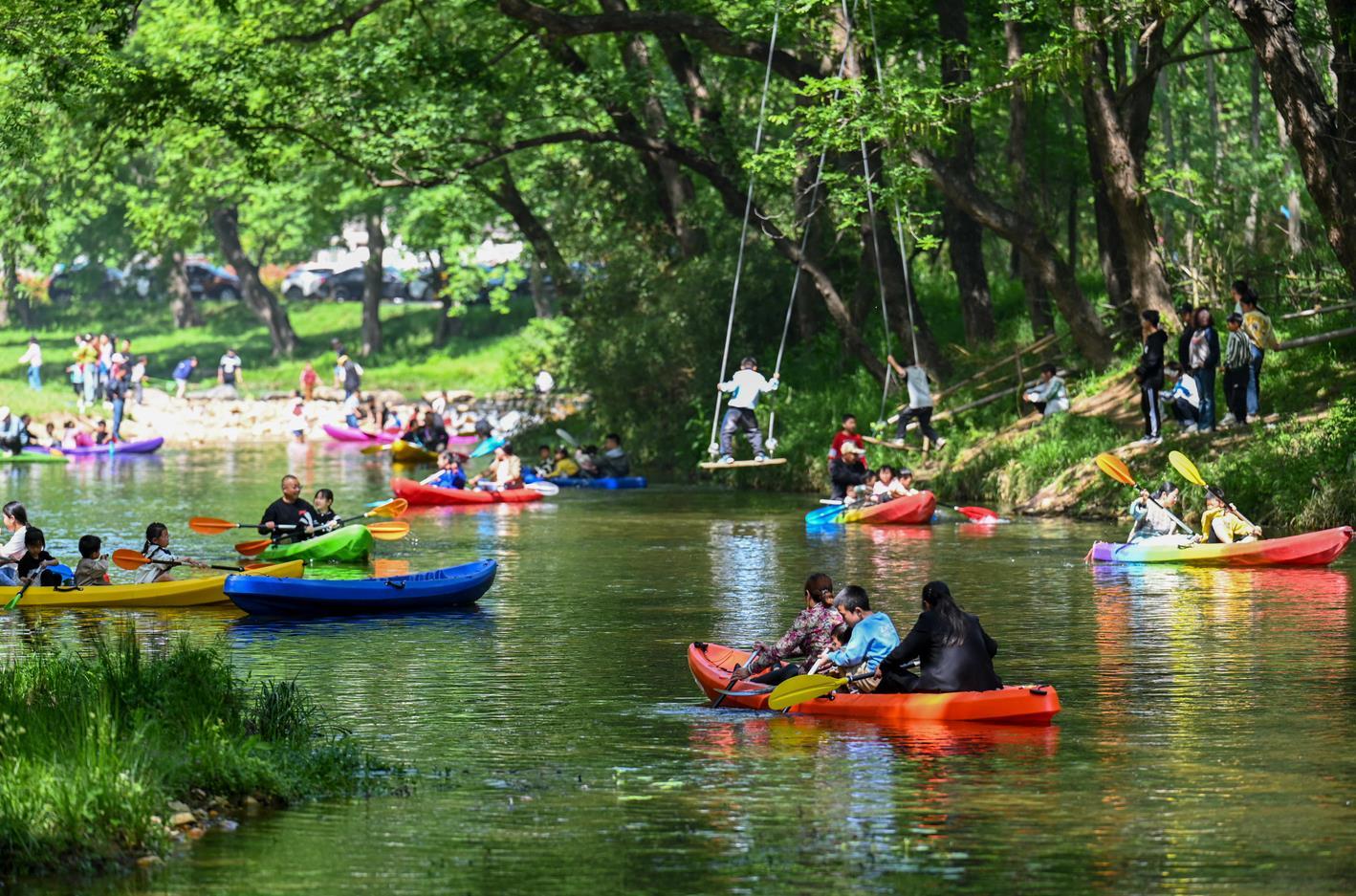 5月1日,新縣郭家河鄉(xiāng)灣店村濕地公園內(nèi),帳篷林立,炊煙裊裊,溪水兩岸游人如織,陣陣笑聲同水面波紋一起緩緩散開(kāi),愜意的鄉(xiāng)村慢時(shí)光在一聲聲“咔嚓”中被定格留下。