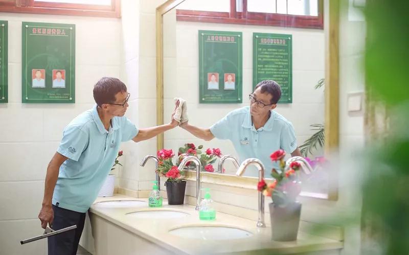 一艘小船,兩只船槳,一個網(wǎng)兜是林世軍全部的工具,他每天工作在1.5萬平方米的水面上,風(fēng)雨無阻全日保潔,常被游客稱作“水上漂”。 廁所清潔工—王小軍