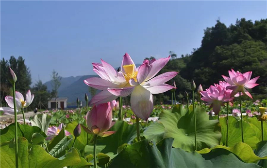 漫步山鄉(xiāng)村野,綠水清風(fēng)飄散于山水之間,空氣中仿佛彌漫著舒適的香氛,一邊賞荷,一邊聞著淡淡的荷葉清香,自然悠閑,靜雅脫俗,情趣盎然……不論來自何方,此刻在這里,幸福溢滿心間!