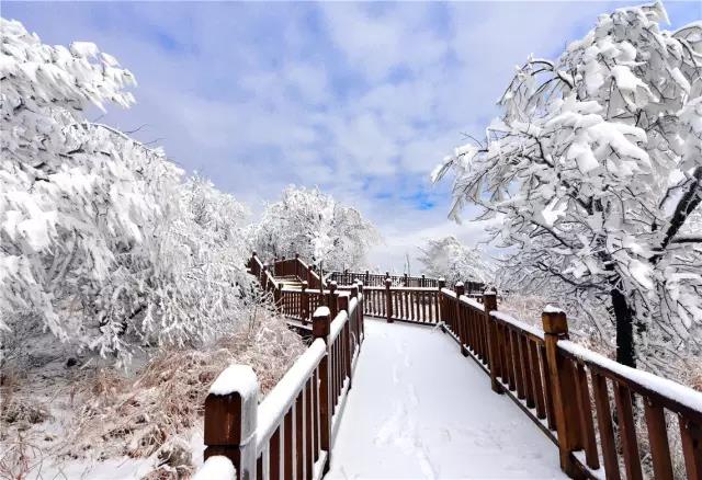 綿軟的雪鋪就在棧道上,覆蓋在叢林里