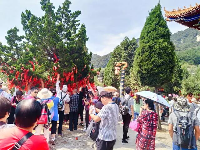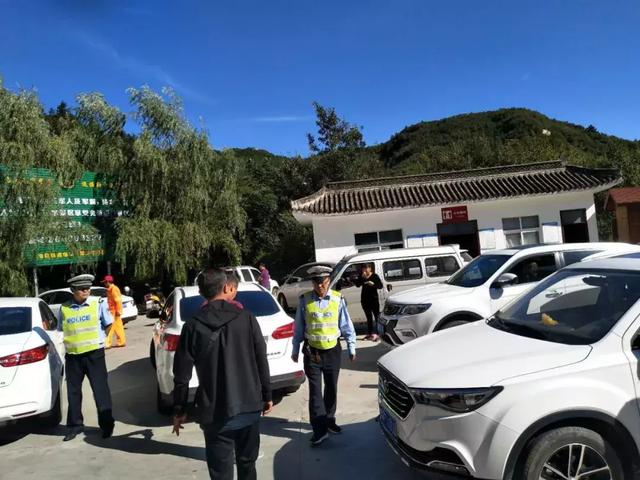 在景區(qū)停車場,停滿了來自各個城市的車輛,以至于在中午高峰時段,有的車輛不得不?吭诼愤。雖然游客多,但景區(qū)秩序井然,游人在工作人員的引導下,有秩序地在景區(qū)游覽。