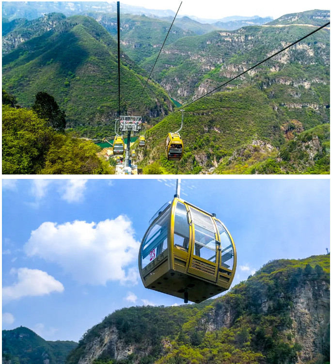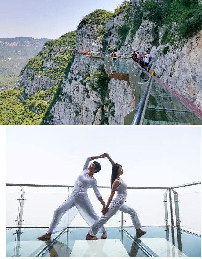 青天河是一個(gè)春有滿山桃花 ,夏有滿山綠蔭的地方,乘坐纜車或站在玻璃棧道之上,可以盡情縱覽河山,體驗(yàn)一覽眾山小的豪邁。