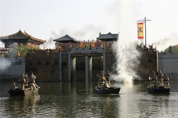 漫游清明上河園,正當你沉醉于大宋的瑰偉建筑時,冷不防就已置身于一個個精心編排的表演之中,你看:大道上走來的不正是巡邏斷案的包拯嗎?閣樓上曲訴衷腸的不正是名媛李師師嗎?那邊廣場龍爭虎斗的不正是劫法場救宋江的梁山好漢嗎?你可以參加一場宋代科舉,當當狀元郎,還說不定中了繡球,被王員外家招了女婿……