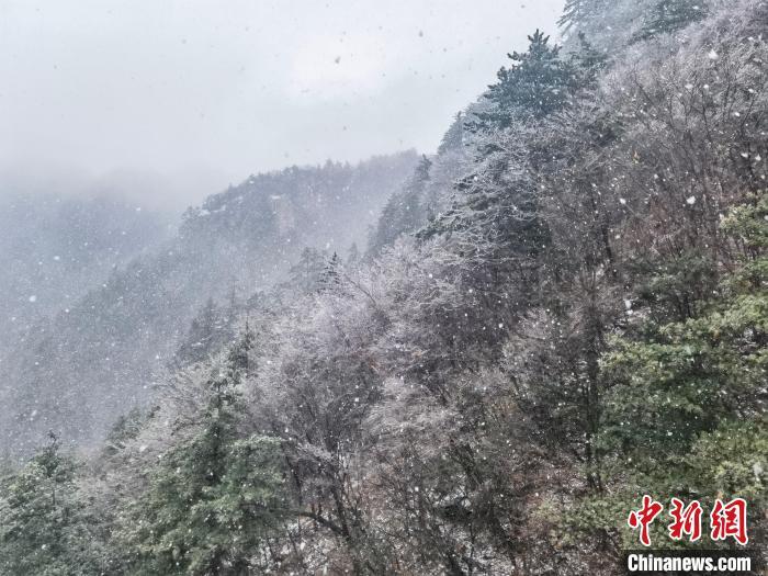 11月12日,伴隨著新一輪的降溫,位于河南南陽市西峽縣境內(nèi)的老界嶺景區(qū)迎來立冬后的第一場雪。