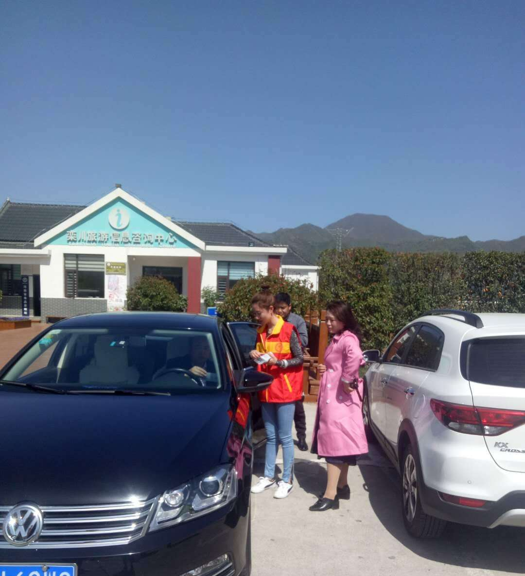 洛欒高速欒川站出口處旅游咨詢中心工作人員發(fā)放山花節(jié)宣傳冊