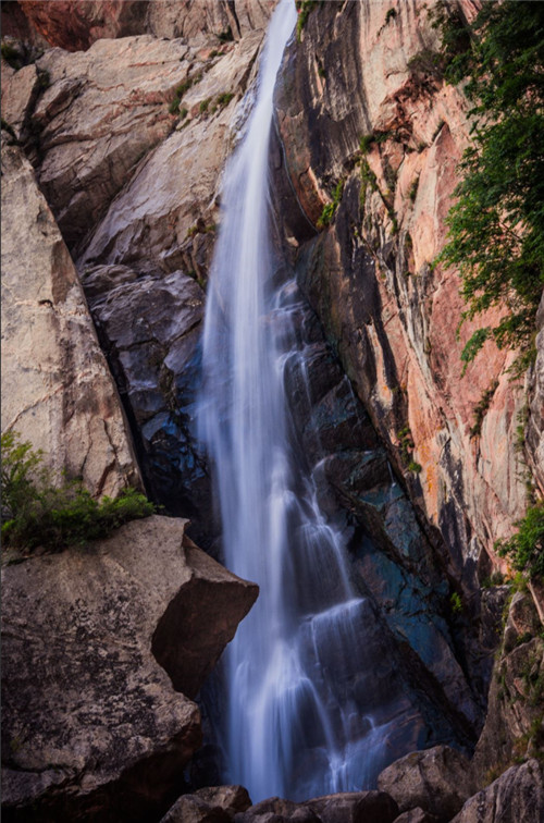 洛陽(yáng)白云山的九龍瀑布落差123米,猶如一匹白練自天而降,鋪展出一幅“珠簾鉤不卷,匹練掛遙峰”的壯美畫面。九龍瀑布在陽(yáng)光的照射下,時(shí)常出現(xiàn)七色彩虹,對(duì)著彩虹許下你浪漫的約定吧!