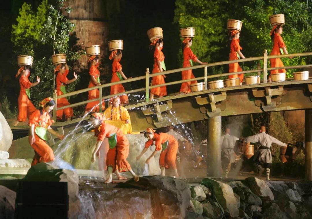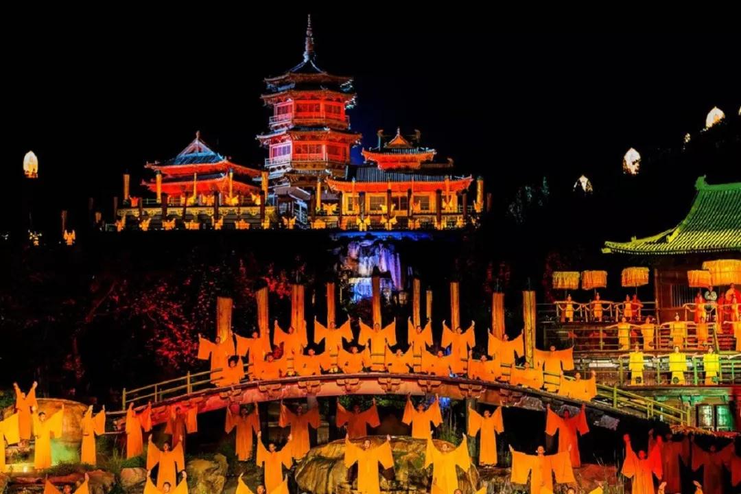 由梅帥元、譚盾、釋永信、易中天、黃豆豆五位大師聯(lián)袂打造的中岳嵩山大型山地實景演出《禪宗少林·音樂大典》。通過《水樂·禪境》、《木樂·禪定》、《風(fēng)樂·禪武》、《光樂·禪悟》、《石樂·禪頌》五個樂章的精彩演繹,生動描述了溪山坐禪、空山雨后、少林拳棍、女童牧歸、塔林雪夜、頌禪法會等情景。