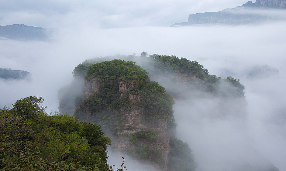 中午日漸高起,明媚、溫暖將山間的清冷和潮濕都送回山林之中,霧氣也漸漸消散。太陽升起仿佛將整個都峽谷喚醒了,日光、人語、鳥音、蟲鳴......慢慢的將整個太行大峽谷變得溫馨,熱鬧了起來。