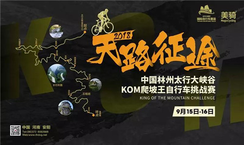 9月15日,2018首屆天路征途-中國林州太行大峽谷·KOM爬坡王自行車挑戰(zhàn)賽即將在風(fēng)光旖旎的太行大峽谷國家級風(fēng)景名勝區(qū)開賽。