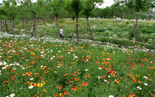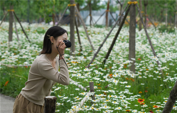 5月7日,記者途經(jīng)河南省鄭州市三全路與文化路交叉口附近的東風(fēng)渠岸邊,成片的花兒任意地開放,不同的品種,不同的顏色,沒有刻意的“雕琢”,卻有著迷人的美,風(fēng)格像極了田園風(fēng)的莫奈花園,因此被人們形象地稱為鄭州版的莫奈花園。