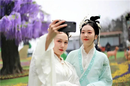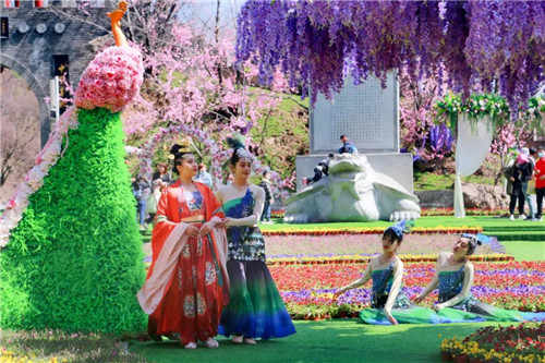 日暖春風(fēng),絲絲入懷,身著漢服的十二花神將在景區(qū)中天門廣場花海之中巡游,洛神甄宓、羞花玉環(huán)、落雁昭君……盛顏仙姿在花海中悠然綻放,將帶給您獨屬于花神的美好祝愿,你的花緣,妙不可言~