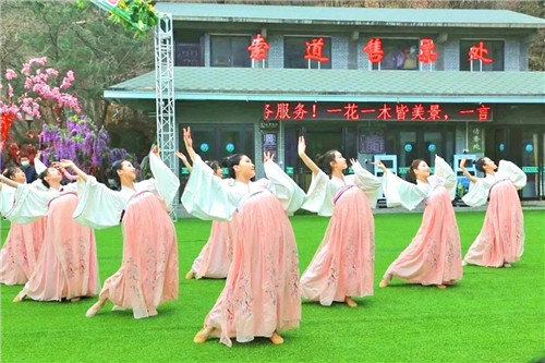 聽一曲古韻仙音,舞一支霓裳舞曲。身著華美漢服的小姐姐在花叢中舞蹈,水袖起舞,裙裾飛揚,花舞弄影,《老子·道》,《落花》,《浣紗》等唯美浪漫的古風(fēng)舞蹈將帶您一起,沉醉在老君山春日的花海世界里。