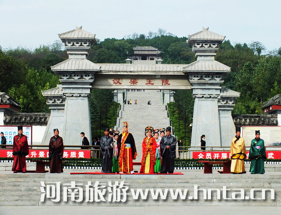 “十一”黃金周期間,芒碭山漢文化景區(qū)張燈結(jié)彩,各種鮮花、條幅、彩燈把景區(qū)裝飾的煥然一新。游客每天都可以觀看芒碭山漢文化景區(qū)新編排的大型歷史情景劇“梁王迎賓”演出,同時,景區(qū)免費(fèi)為游客提供穿漢服、留倩影服務(wù),試穿美麗華貴的漢服,留下美麗瞬間。芒碭山漢文化旅游景區(qū)推出的漢文化體驗系列活動,還有獎射箭競技、開筆禮、成童禮、成人禮、漢婚禮、敬老禮、漢宴禮、推鐵環(huán)等,相信定會使廣大游客在芒碭山盡情游玩的同時學(xué)習(xí)、體驗到中國傳統(tǒng)文化和漢代禮儀,使您更加深刻的了解和認(rèn)識我國深邃、厚重的優(yōu)秀傳統(tǒng)文化。