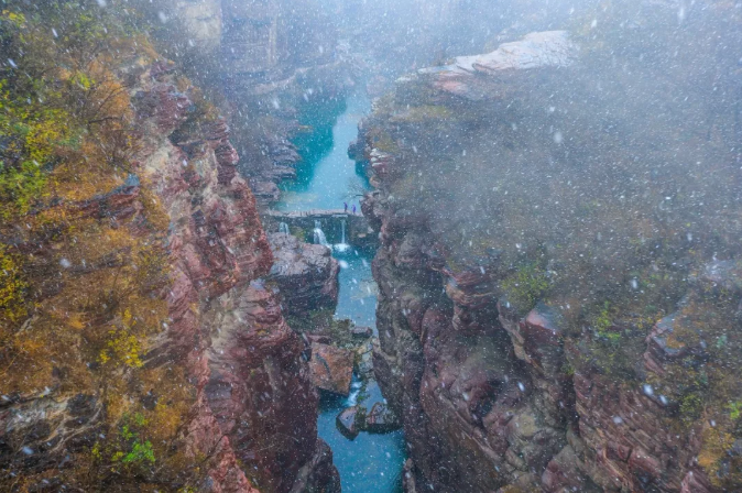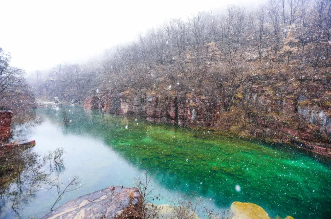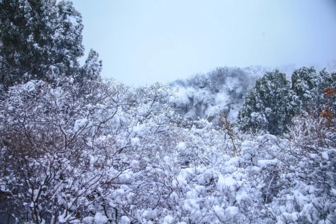 雪花似鵝毛一般,紛紛揚揚 晶瑩如玉、潔白無瑕 此時此刻的云臺山 成為了詩句中的美景