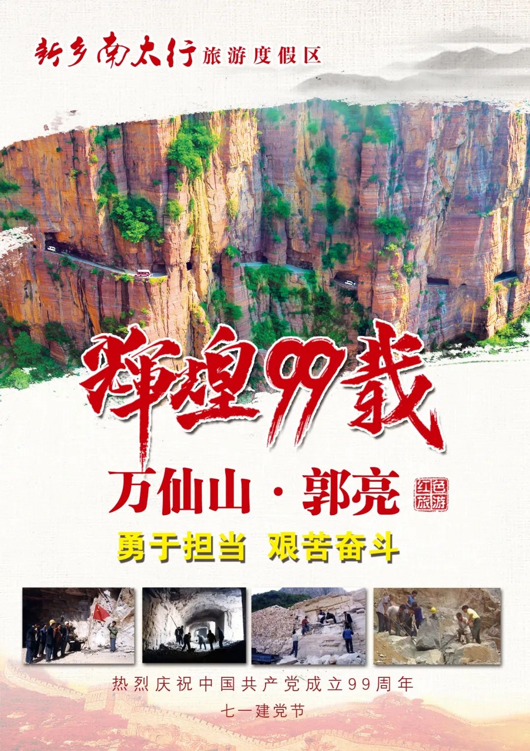 “一切向前走,都不能忘記走過的路;走得再遠(yuǎn)、走到再光輝的未來,也不能忘記走過的過去”。新中國成立后,1972年,郭亮村支書申明信帶領(lǐng)13位壯士賣掉村里所有家當(dāng),買來炸藥、鐵錘,硬是在沒有電力、沒有機(jī)械的狀況下,鐵錘破石壁,鋼絲走紅巖,全憑人力手工,開始了他們的艱難鑿山之路。歷時(shí)5年,終于在絕壁上鑿出了一條高5米、寬4米、長1250米的石洞——郭亮洞。這條通向外界的通道,也改變了郭亮村人民的命運(yùn)。從此,太行明珠走進(jìn)了全國甚至全世界的視線,譜寫了一個個廣為流傳的佳話。如今,萬仙山景區(qū)已經(jīng)成為一個紅色精神和山水景觀完美融合的高品質(zhì)景區(qū),每年都吸引一批批的黨員干部專程前來,領(lǐng)悟紅色精神內(nèi)涵,追尋陽光旅行足跡。