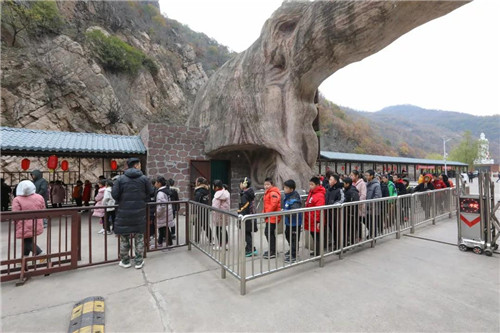 當(dāng)天一大早,濟(jì)源承留中心校近500名師生來(lái)到 了小溝背媧皇廣場(chǎng),在大古石組剖面石前孩子們認(rèn)真的聽講,感受大自然的神奇!在石門前孩子們?nèi)滩蛔⊥O,觀看景區(qū)奇異的山水景觀和創(chuàng)世神話視頻。