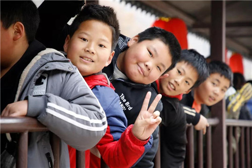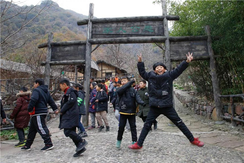 在小溝背愚公人家古村落前,孩子們領(lǐng)略神秘的上古風(fēng)情,幸?鞓返奶鴦(dòng)掩蓋不住激動(dòng)的心情。
