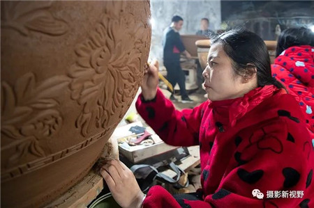 這位老人坐在黑陶大缸旁,追憶黑陶生產(chǎn)走過(guò)的路程,對(duì)前景發(fā)展充滿了信心。