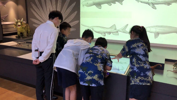 研學(xué)博物館突破封閉式展柜襯里方式,大量使用開(kāi)放式展臺(tái)陳列魚(yú)類(lèi),爬行類(lèi),硅化木類(lèi)化石。中小學(xué)生都可以親手體驗(yàn)魚(yú)鱗、龜甲和木材的質(zhì)感,從而建立對(duì)動(dòng)植物化石的準(zhǔn)確認(rèn)識(shí)。