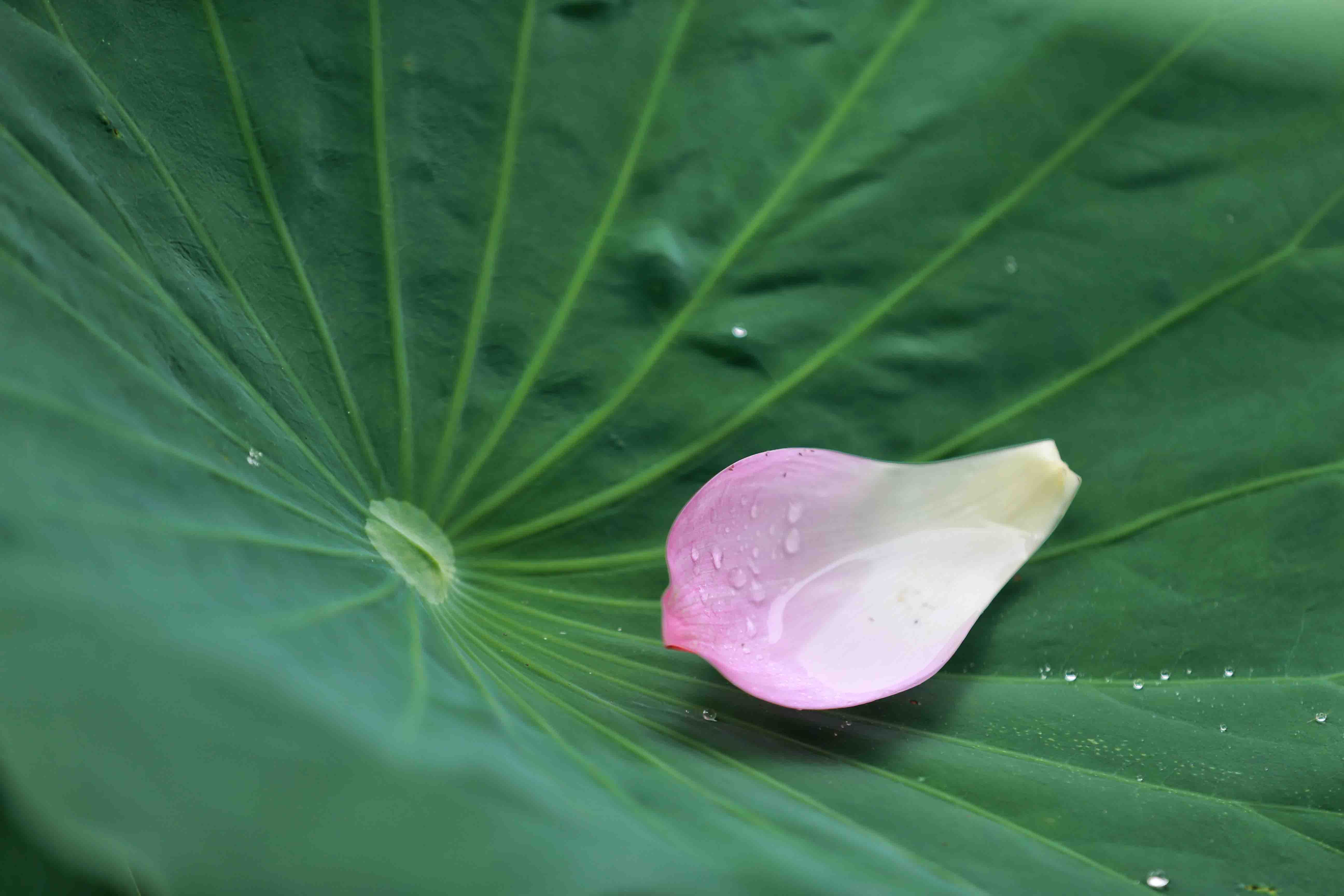 一片花瓣墜落在荷葉上 李金雷 攝