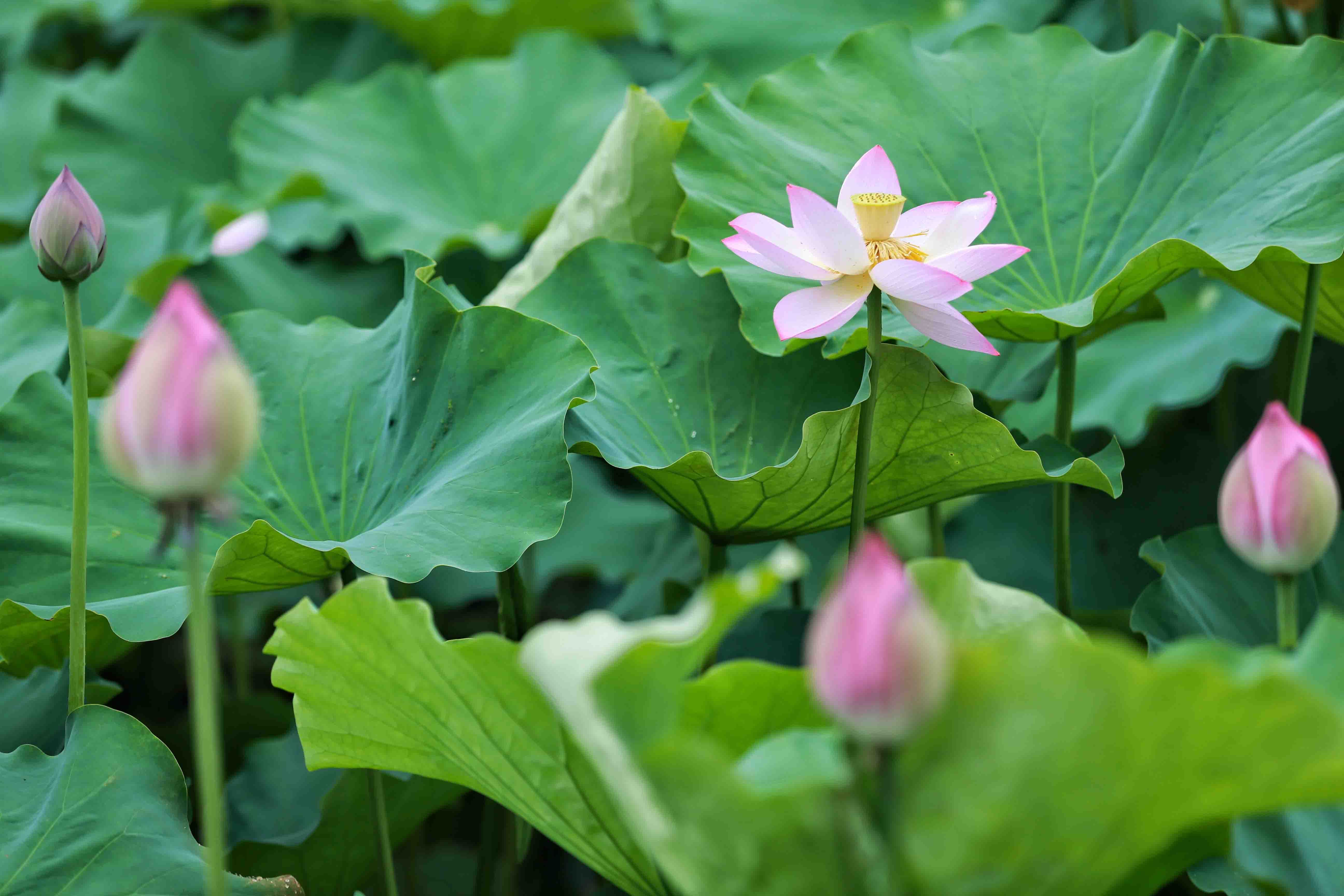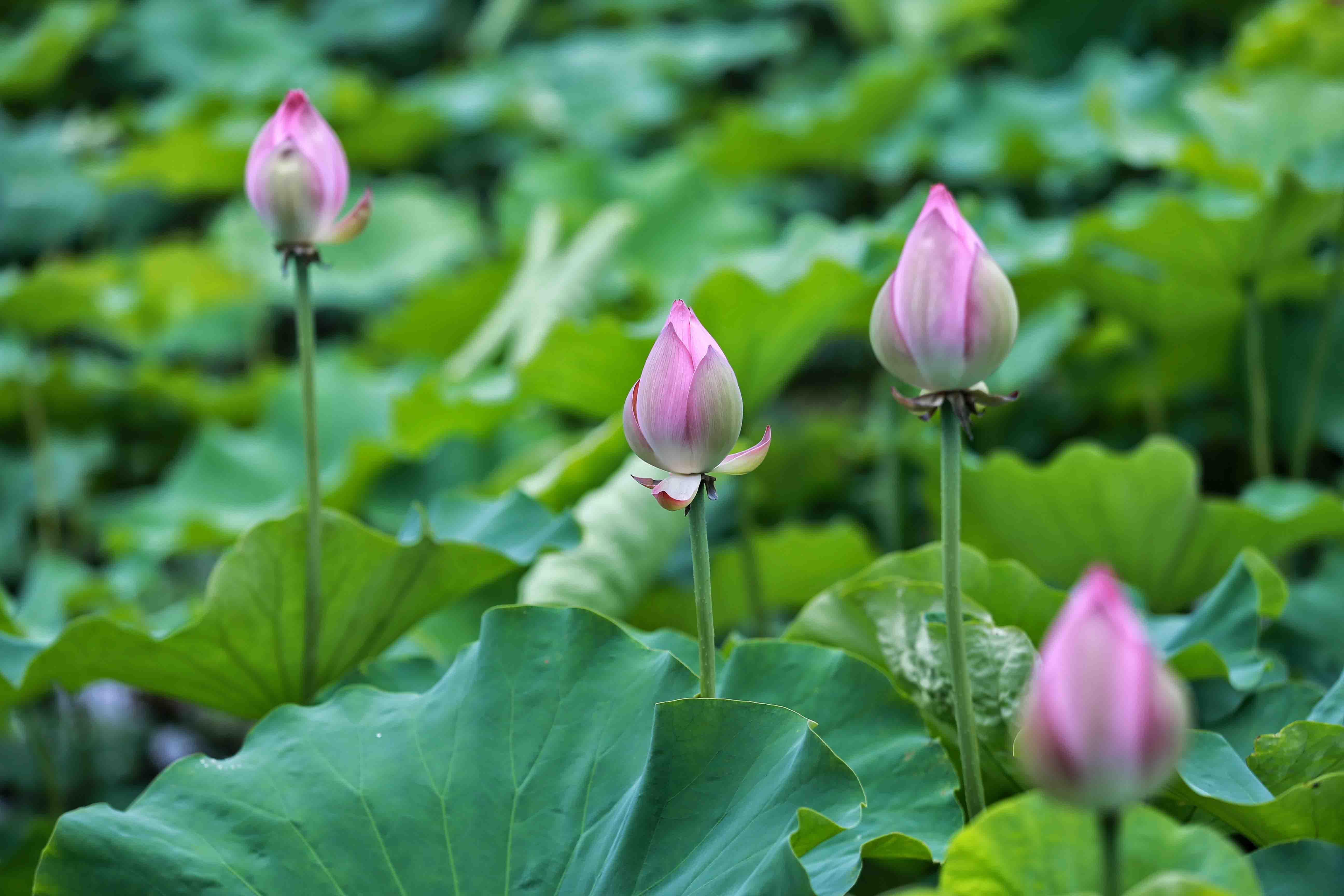 花苞掩映在荷葉下,即將展現(xiàn)出它最美的姿態(tài)。 李金雷 攝