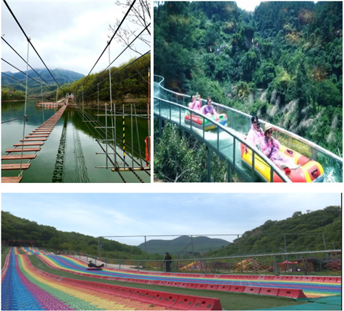 來這里可以體驗驚險刺激的步步驚心橋、妙趣橫生的親子樂園、飛馳而下的彩虹滑道、清涼冰爽的山間玻璃水滑、悠然自得的情侶湖竹排名吃薈萃百味街......