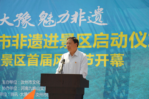 開幕式上,汝州市文化廣電和旅游局局長李玉政致詞,他表示文化是旅游的靈魂,旅游是文化的載體,此次非遺進景區(qū)活動,是推動文化與旅游進一步融合,提升景區(qū)的文化內(nèi)涵和品位,增強景區(qū)吸引力,同時以旅游業(yè)為載體傳承和弘揚優(yōu)秀文化。