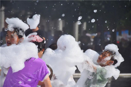 在泡沫里玩耍,探尋不一樣的童年樂趣,讓歡呼聲、尖叫聲,匯集成這個夏天最動聽的旋律。
