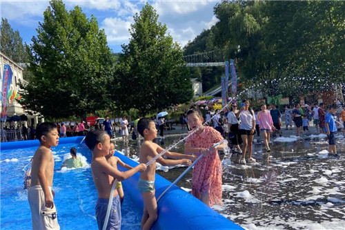 8月15日,雞冠洞第四屆清涼狂歡季之酷爽夏日 泡沫狂歡節(jié),在雪白綿密的夢幻泡泡中開啟。