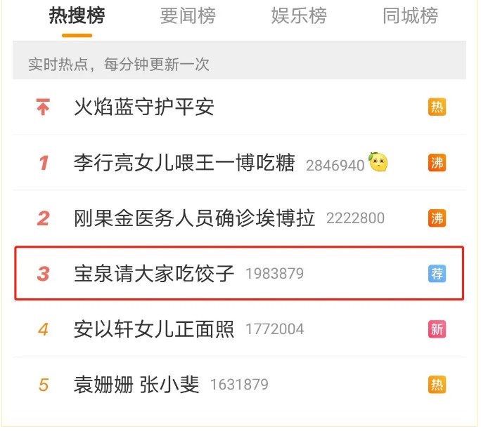 2月15日,#寶泉請大家吃餃子#上微博熱搜榜,引發(fā)網(wǎng)友關注。