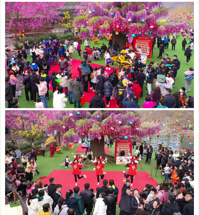山水間沐浴春風,游園會里吃喝玩樂四重唱。花樣舞獅、夢幻雜技、傳統(tǒng)民俗、天降財神……你記憶中的年味應有盡有。寶泉游園會一經推出,瞬間引爆全城,萬人空巷來打卡,熱熱鬧鬧過大年。